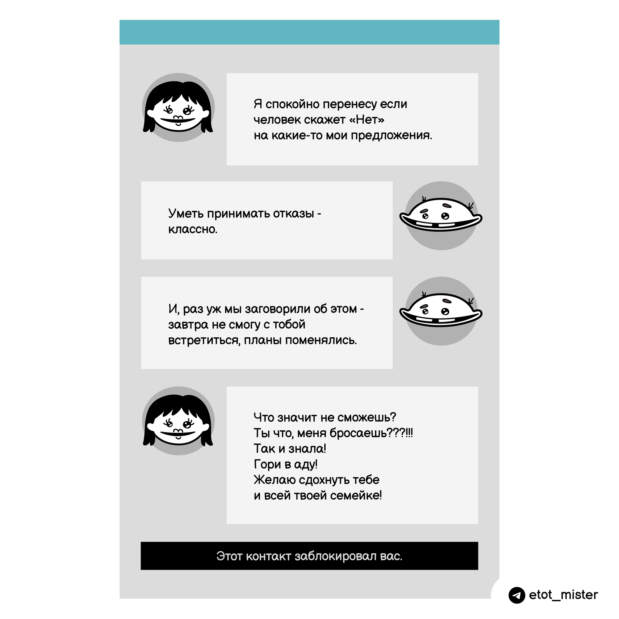 etotmister 1 час назад Слово "Нет" Комиксы о мистере Дженкинсе.Добрячок с нервным срывом - t.me/etot_mister. [моё] Юмор Комиксы Картинки Творчество Telegram (ссылка) Ещё 0