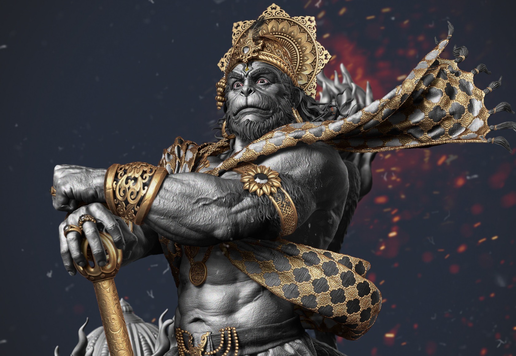Справа, третий от края - это Шри Хануман. Его образ отлично тиражируется как "Царь Обезьян", Сон Гоку, Вуконг и т.д..