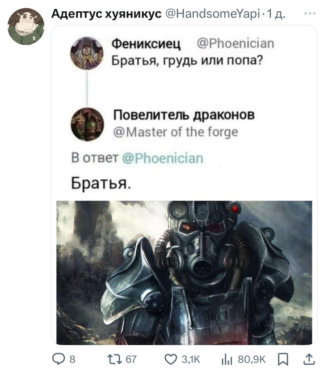 5450 user10154223 Юмор для всех и каждого Сложный выбор 9 месяцев назад Юмор Fallout Скриншот Комментарии X (Twitter) Братство стали 177 41 3 3 2 Ещё 0