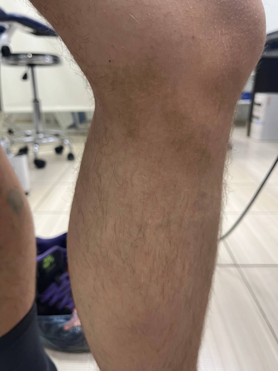В данном случае его беспокоили тяжесть в ногах и эстетика (выпирающие вены). Лазерная процедура в сочетании со склеротерапией решила эти вопросы и устранила главный фактор риска тромбоза поверхностных вен.