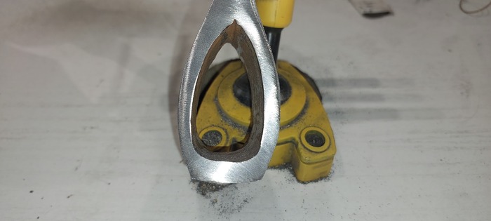 Прошелся по радиусу болгаркой с лепестковым диском и грубо задал форму.