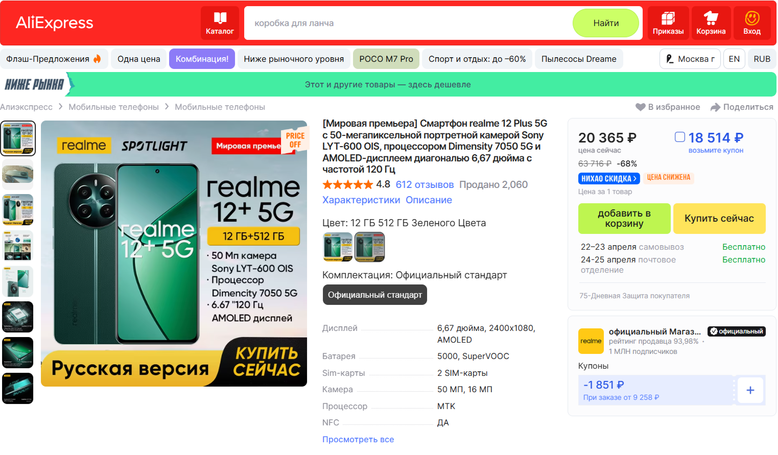 Смартфон realme 12 Plus 5G всего за 18514 рублей!