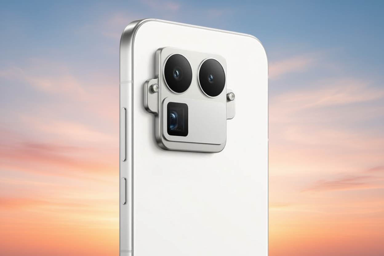По бокам от модуля размещены дополнительные элементы, похожие на «уши» — предположительно, именно там будут установлены светодиоды вспышки или индикаторы состояния. Может быть, такой подход превращает технический блок в узнаваемый визуальный элемент, подчёркивающий индивидуальность устройства? Пока не ясно.