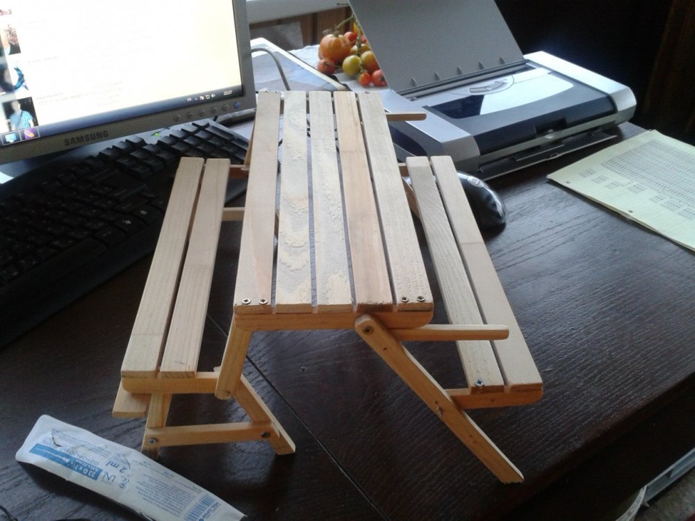 Зашел посмотреть как фиксируешь спинку. Не очень понятно. А то ребенка жалко. Ветром же закроет по спине или хуже. Идея замечательная. И еще дам совет. Детей постарше не пускать. Сядут на спинку и накроют мелких. У меня так на даче один "орел" постарше столик сломал. Хорошо не на мелкую шлепнулся.