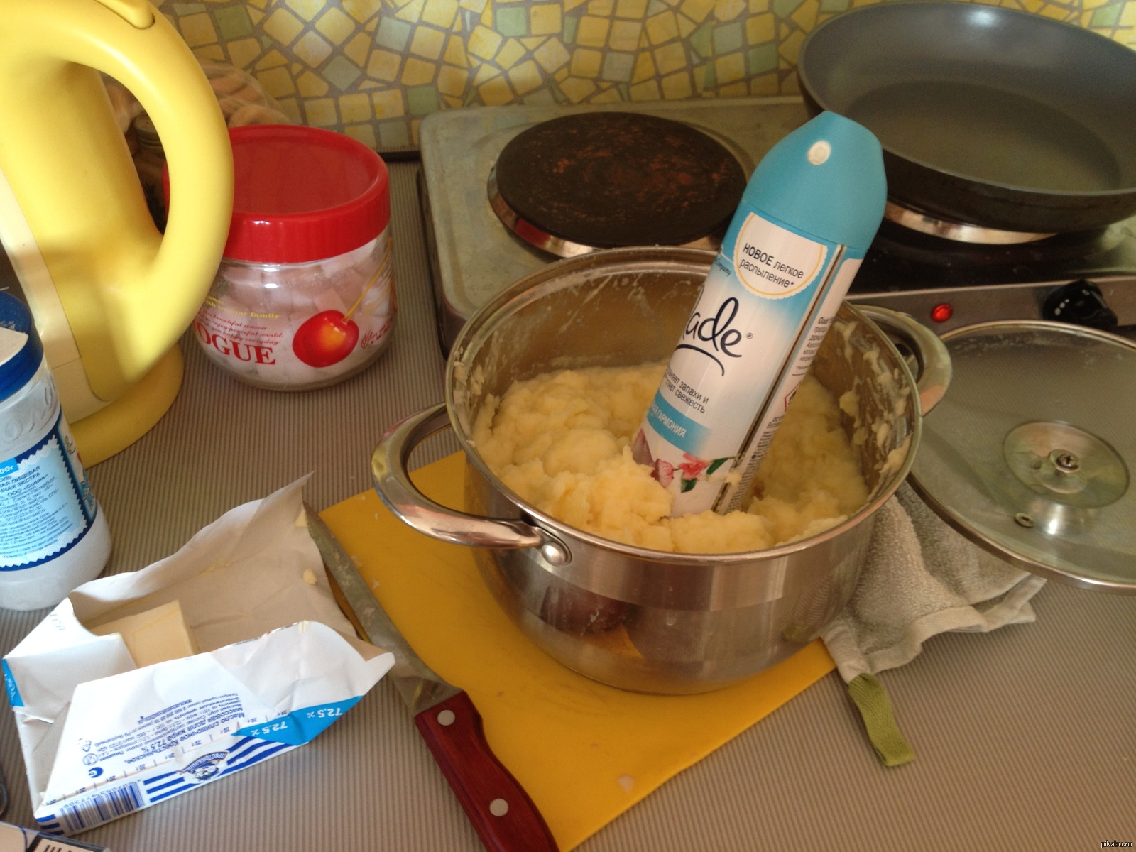 на съемной квартире решил сделать пюрэшку, толкушки не было естественно, решение пришло внезапно