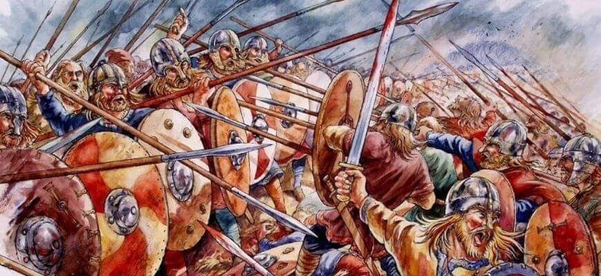 Фактически в описании пешего строя мы видим характерную для германских народов «стену щитов».
