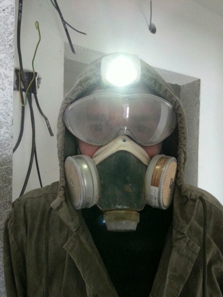 В совсем адских условиях можно малярную маску использовать типа как на пике - дорого-богато :)