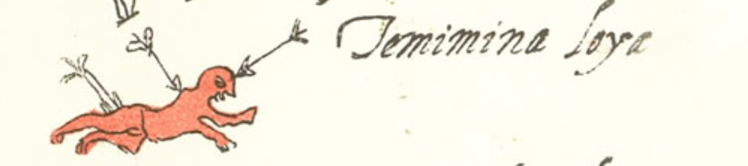 Изображены, по всей видимости, флаги, причём перевёрнутые, развевающиеся на ветру - но похоже и на кровавые лезвия / Кодекс Риос