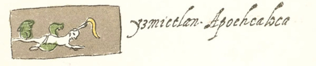 1) Ицкуитлан (Itzcuitlán - "место собак") или Апаноуайан (Apanohuayán - "переправа через реку"): первый уровень на пути в Миктлан. Человек предстаёт перед сворой злющих собак породы Шолоицкуинтли (отсюда и название места), которые охраняют реку. Эти собаки могут его слопать, если только родные и близкие не дали умершему с собой амулет с изображением бога-покровителя (мог быть кто угодно) - тогда они помогут ему переплыть эту реку.
