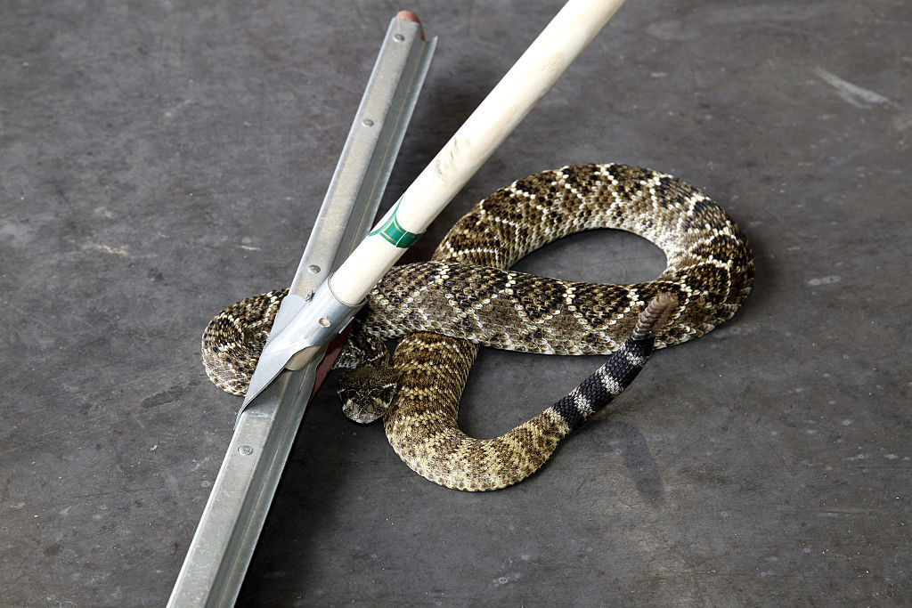 Приспособления для охоты на змею довольно простые — палка с крюком на конце и мешок, изнутри укрепленный специальными пластинами, чтобы змея не могла прокусить ткань. Также могут использоваться корнцанги — специальные щипцы для захвата змеи. Серпентологи обычно работают в кирзовых сапогах, некоторые используют резиновые перчатки. Дело в том, что змее, чтобы впрыснуть яд, необходимо прокусить кожу и сжать челюсти, а так как большинство видов не могут прокусить плотную резину, то не возникает необходимого давления на клыки, и ценный для охотника яд не расходуется.