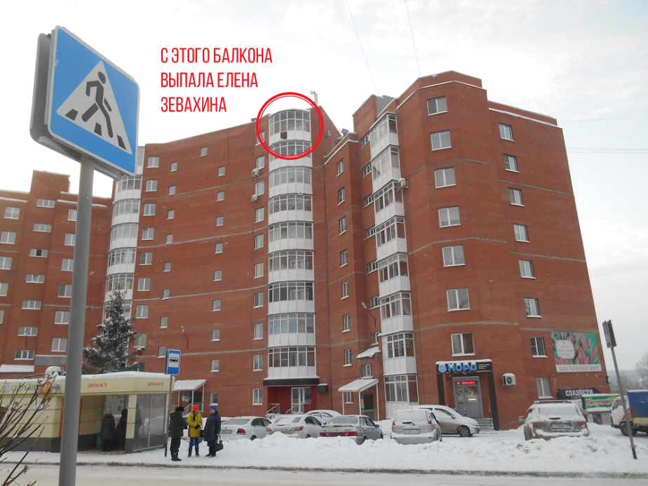 Елена Зевахина погибла вечером 7 декабря 2017 года. Она вышла на балкон своей квартиры в доме на Стахановской, 8 «А» и выпала с 10 этажа. В этот момент в квартире находились её 11-летний сын и 17-летняя дочь. Дети спали.