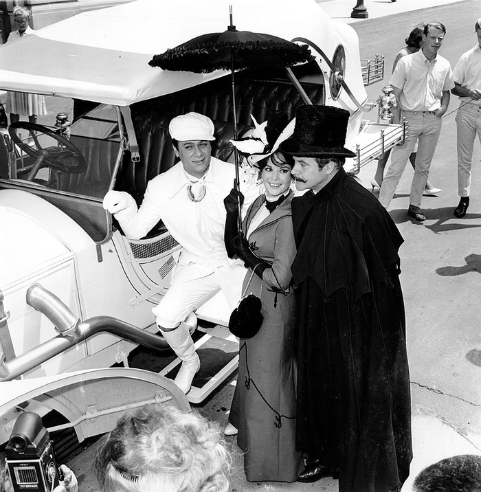 Тони Кертис, Натали Вуд и Джек Леммон на съемочной площадке "Большие гонки" (1965). В советском прокате из фильма была вырезана сцена, где Вуд обращается к жителям Тобольска по-русски.