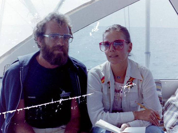 Натали Вуд и Роберт Вагнер на мостике своей яхты за три года до трагедии.
