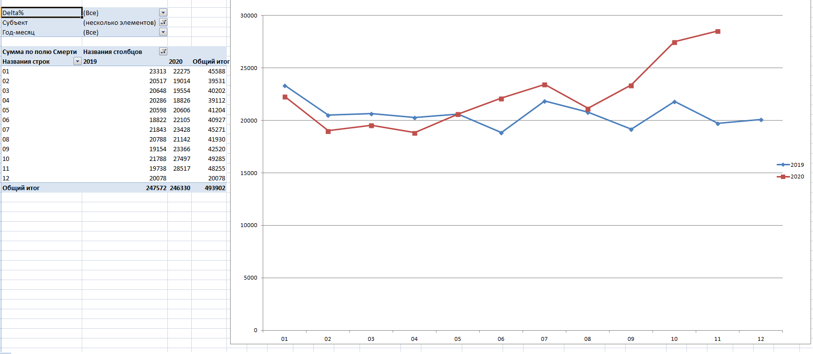 Свел несколько регионов. Алтай, Бурятия, Ставропольский край, Краснодарский край, Тульская, Новосибирская, Томская, Омская и Смоленская области.Детально по каждому региону - в предыдущих постах. Москву не брал, т.к. нет данных по ноябрю 2020.