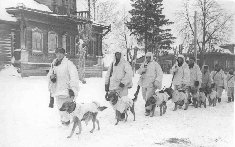 Взяв в левую руку поводок от собаки, а в правую щуп - длинную палку с острым железным стержнем на конце, саперы-вожатые вылезли из окопа и встали на лыжи.