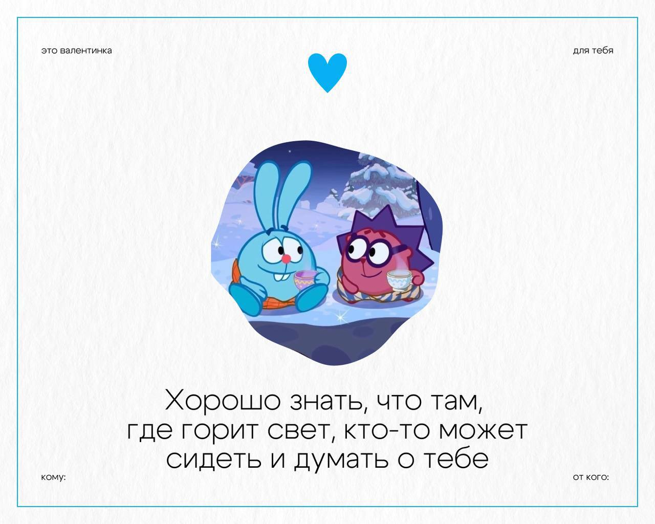 Причем сделала их дизайнер Варвара Дышко, у которой просто залетел в соцсетях видос с этими валентинками, а сммщик Смешариков взял на вооружение (автора они указали, уважаемо).
