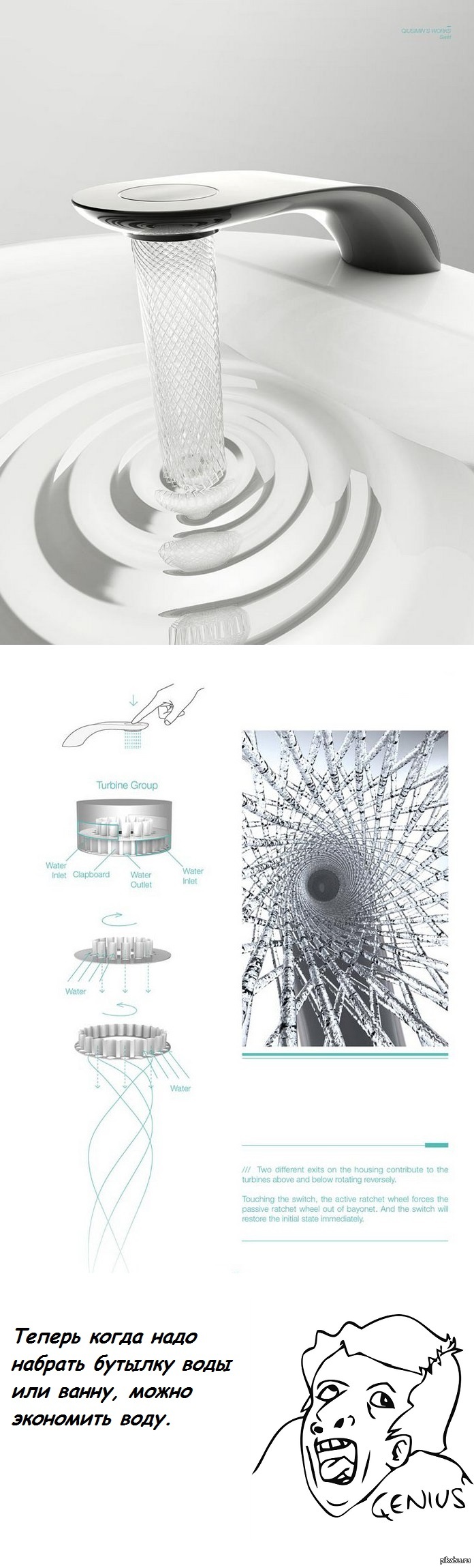 1452 Advokate999 10 лет назад Смеситель экономящий расход воды. Превращает поток воды в узор и должен уменьшить расход воды на 15 %. Смеситель Красота Экономия Интересное Наука Гениально