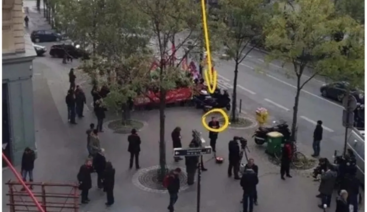 Следующая фотография сделана с экрана телевизора. Вы видите справа эмблемку телеканала, а слева надпись: "En direkt Paris" - "Прямо из Парижа".