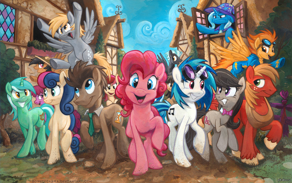RauTaketJu "Smile!" 10 лет назад Немного запылилось, но автор по-прежнему sophiecabra. My Little Pony DeviantArt Trixie Spitfire Big Macintosh Octavia Melody Vinyl Scratch Pinkie Pie Doctor Whooves Bon Bon Lyra Heartstrings Derpy Hooves Spainfischer