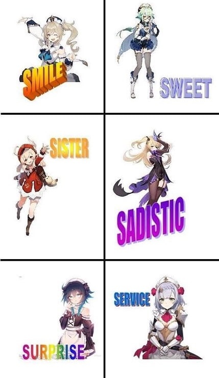 19 DELETED Smile! Sweet! Sister! Sadistic! 5 лет назад Blend S Genshin Impact Anime Art Noelle (Genshin Impact) Venti (Genshin Impact) Fischl (Genshin Impact) Klee (Genshin Impact) Sucrose Barbara (Genshin Impact) Ещё 0