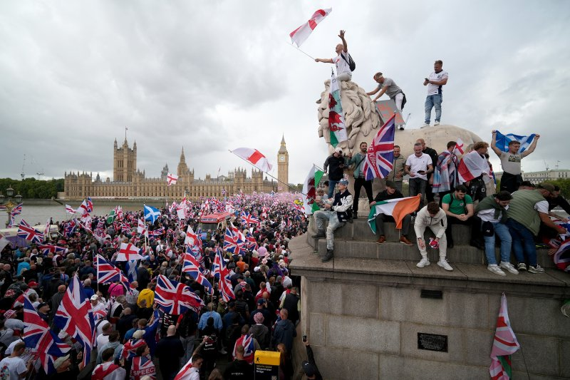 Марш протеста под лозунгом «Объединим королевство» стал кульминацией назревавших с июля протестных настроений. Их первым триггером стал факт изнасилования школьницы мигрантом. Ситуацию усугубило ужесточение законодательства против проведения массовых акций, а также объявление террористической одну из пропалестинских организаций — Palestine Action. Используя все подконтрольные СМИ и иные каналы, власти стали навешивать на участников акции ярлыки «ультраправых», «расистов» и «фашистов». А для создания картинки «разных мнений в социуме» неуклюже организовали акцию «Марш против фашизма», в которой приняли участие не более 5 тысяч человек, преимущественно сами мигранты и неугомонные либералы. Формальным организатором митинга стала группа Stand Up To Racism (Дай отпор расизму).