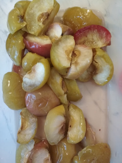 Яблоки вымыли, нарезали, почистили… всё так! Потом выложили на противень и засыпали сахаром - примерно в указанной пропорции.