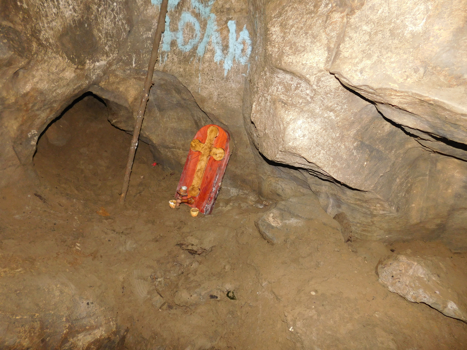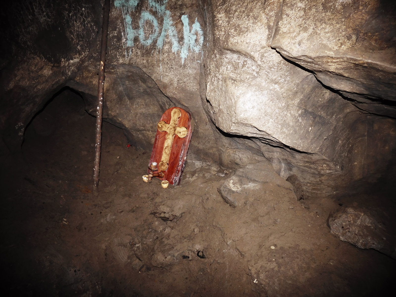 В этой пещере мы побывали весной 2016 года. Приехали с группой туристов, поэтому не очень много гуляли по самой пещере. Группа спускалась в неё с руководителем в два приёма (разбились на две подгруппы).