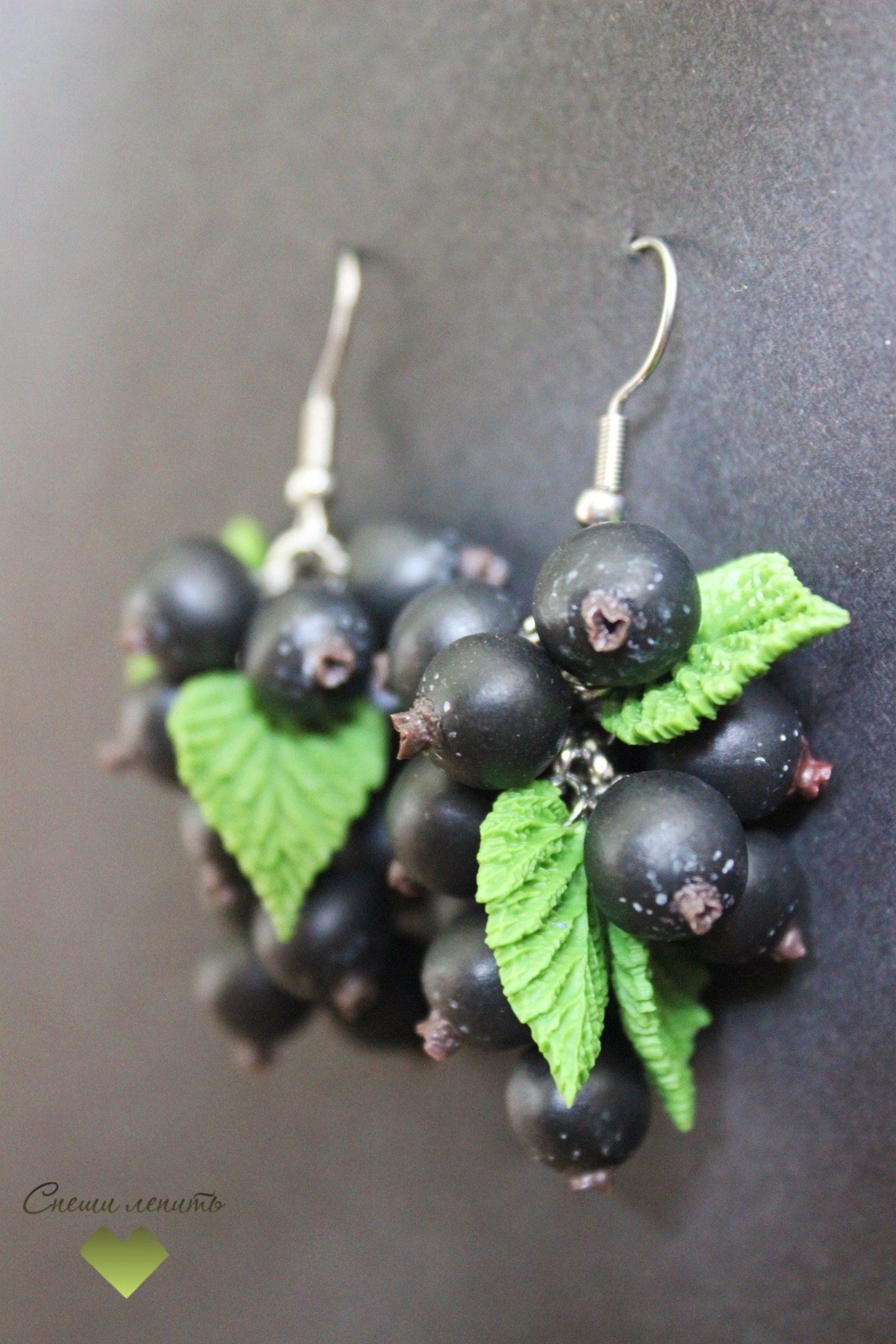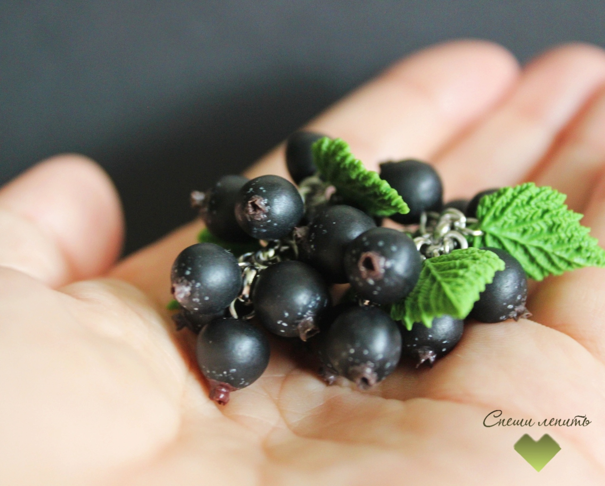 Чёрная смородина из полимерной глины. В этом году даже не поела её, вот лепная только ((( Ягоды из "старого" способа, сейчас же леплю немного по другой технике.