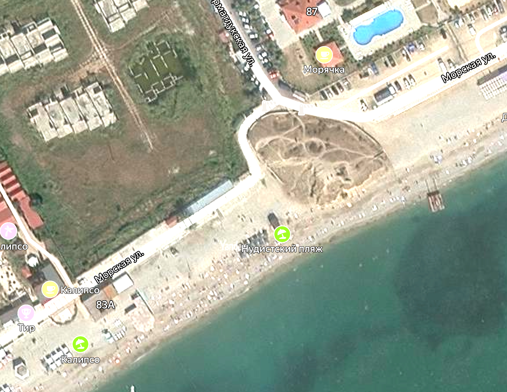 Ну и рядом панорамный снимок с квадрокоптера, тоже видно всякие голые тела, но уже не так крупно