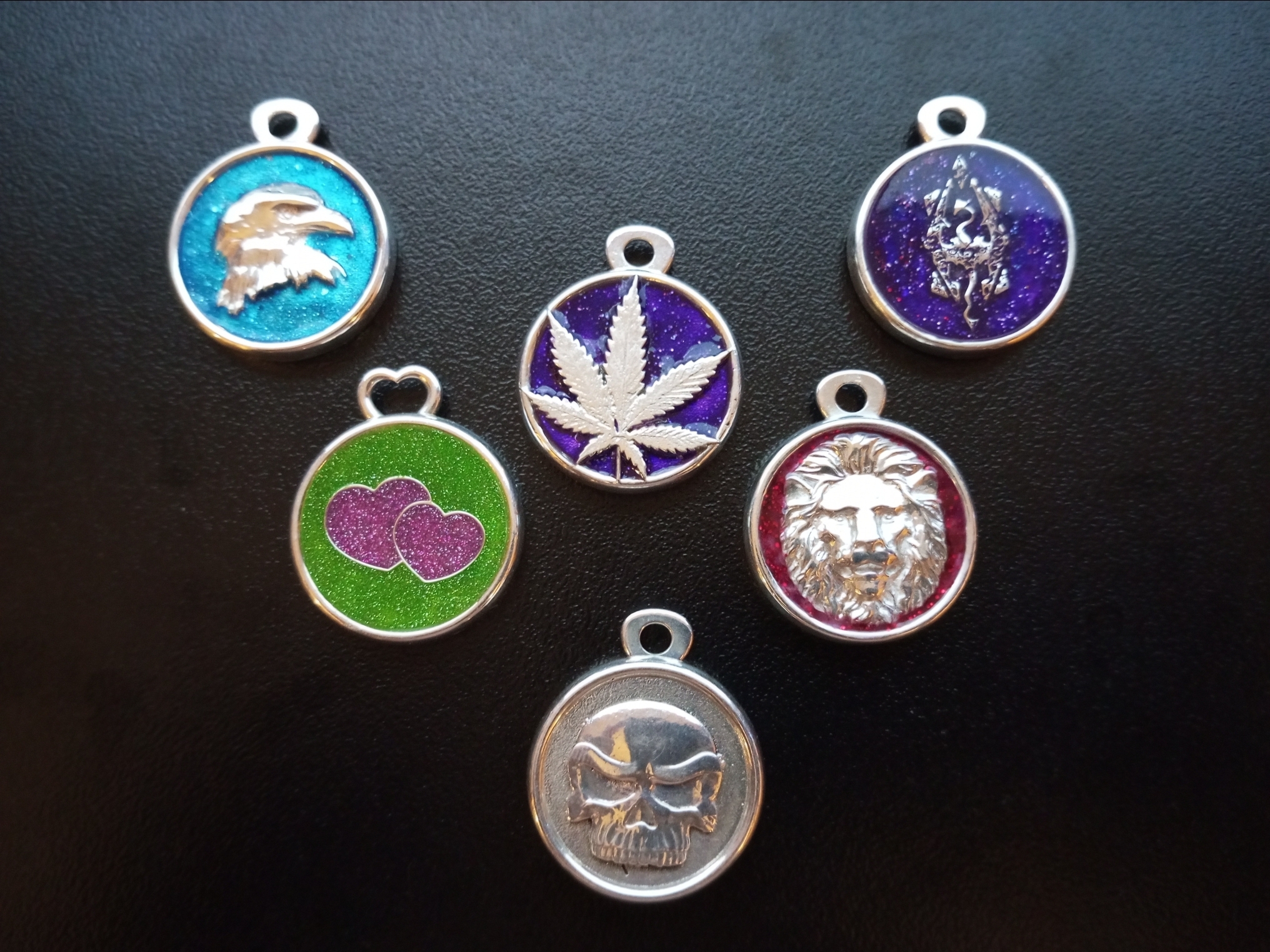 А мы вот такие делаем из серебра... С RFID чипами 125khz ( ключи для домофона). Но не эпоксидка с краской, а гель лаки для ногтей)))