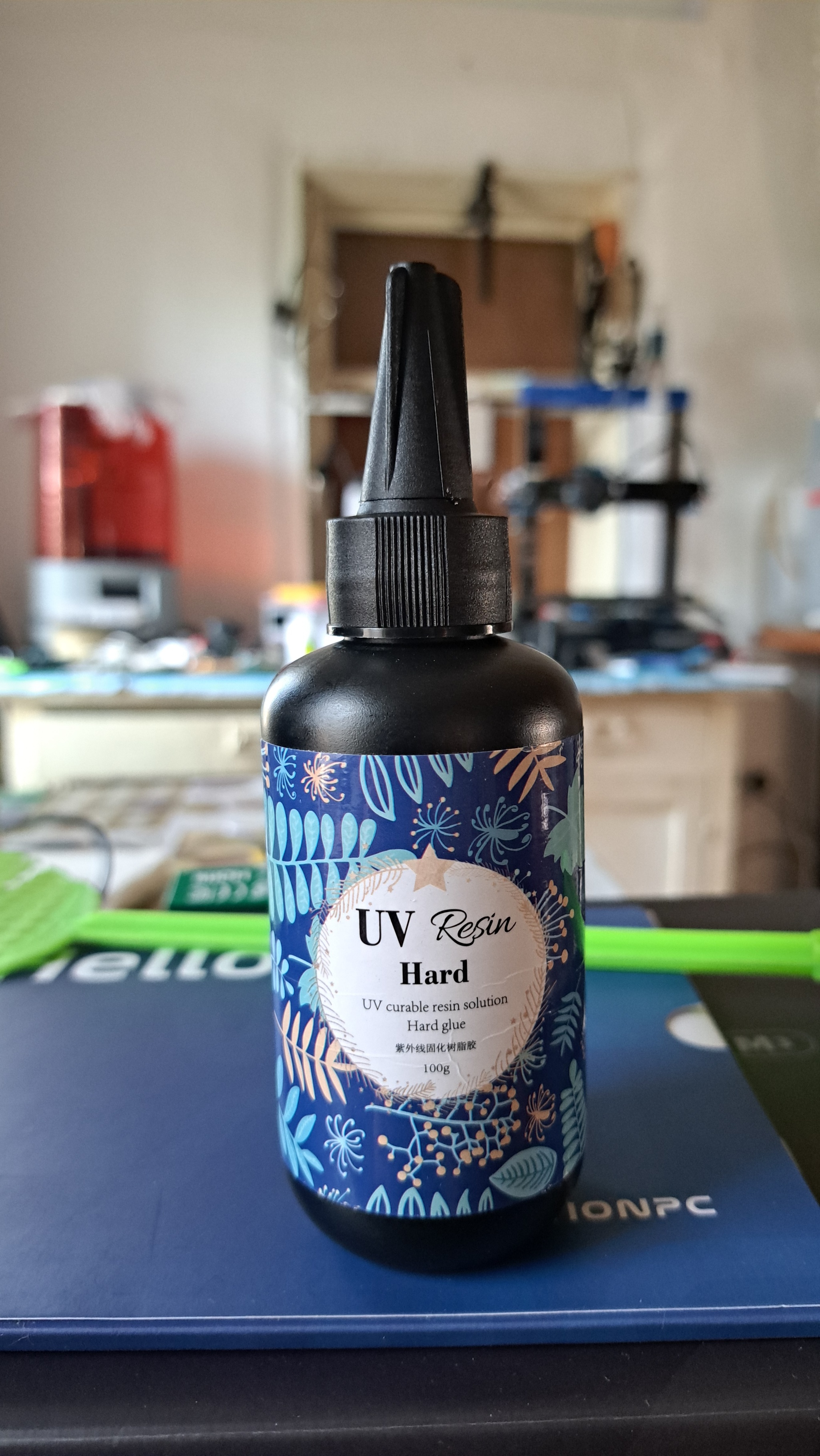 Гель-лак, фотополимер для принтера и даже клей в черном тюбике пахнут одинаково отвратительно. А вот уф-эпоксидка не пахнет (приложил фото упаковки уф-эпоксидки)