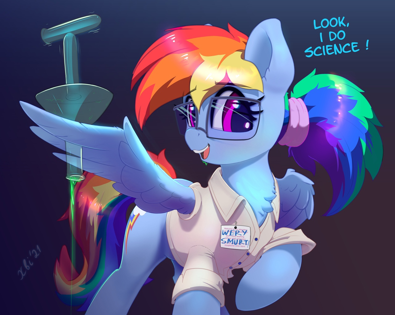 44 sasha4213 ЖУК My Little Pony Смотри, я делаю науку! 2 года назад Надпись на бейджике: "Очень вумная" My Little Pony Rainbow Dash Xbi Ещё 0