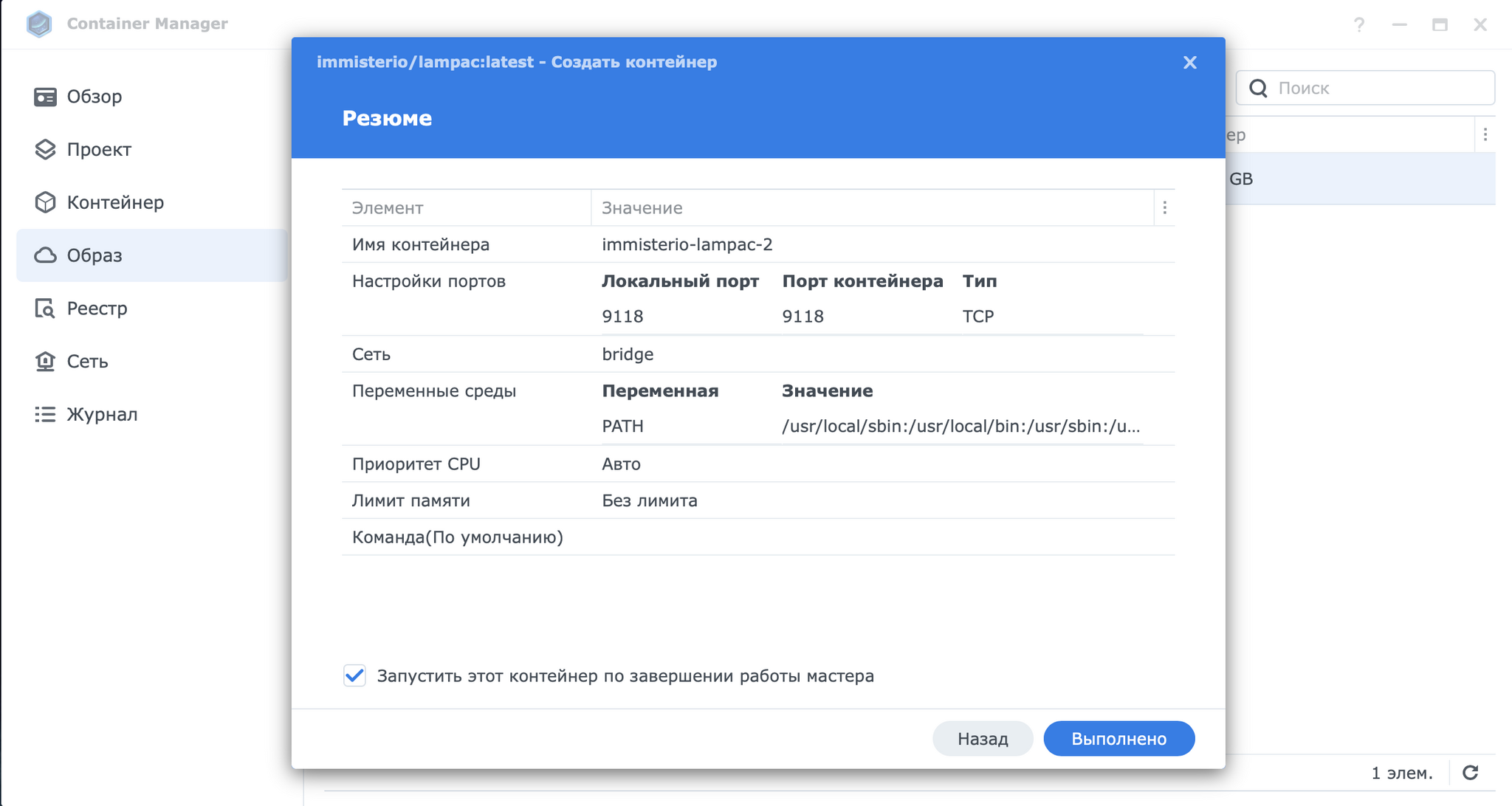 7. Переходим в раздел "Контейнер" и здесь появится созданный контейнер.