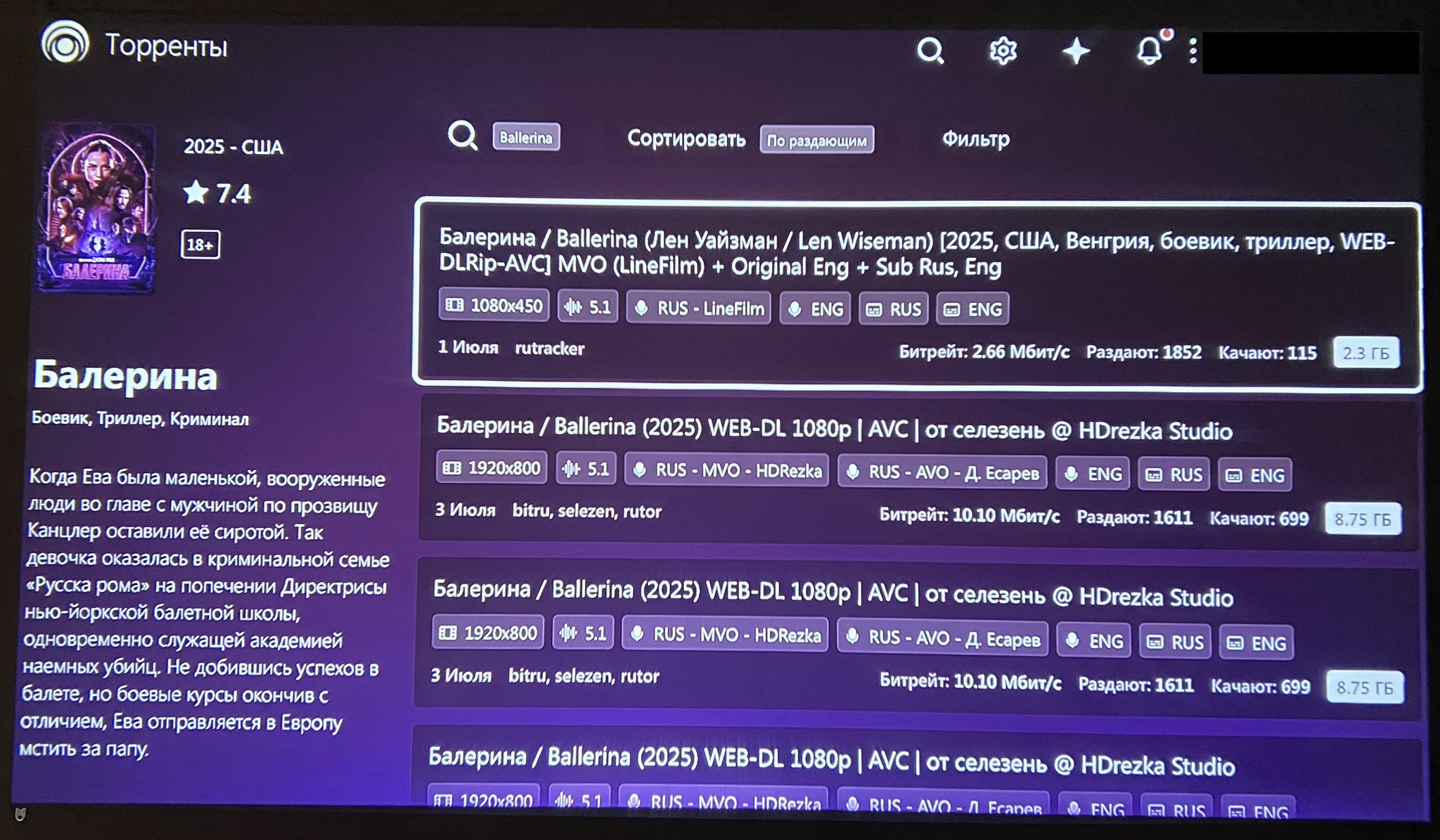 Что получится в итоге? Личный сервер Lampa + TorrServe, на приставке смотрим фильмы без загрузки. Как это будет выглядеть: