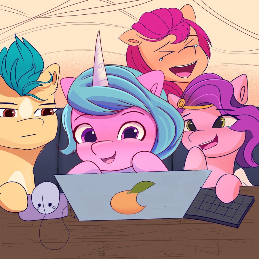 22 SilverCutePony My Little Pony Смотрят что-то забавное 2 года назад Возможно, связанное с Хитчем My Little Pony Izzy Moonbow Sunny Starscout Pipp Petals Hitch Trailblazer Ponyart Арт Ещё 0