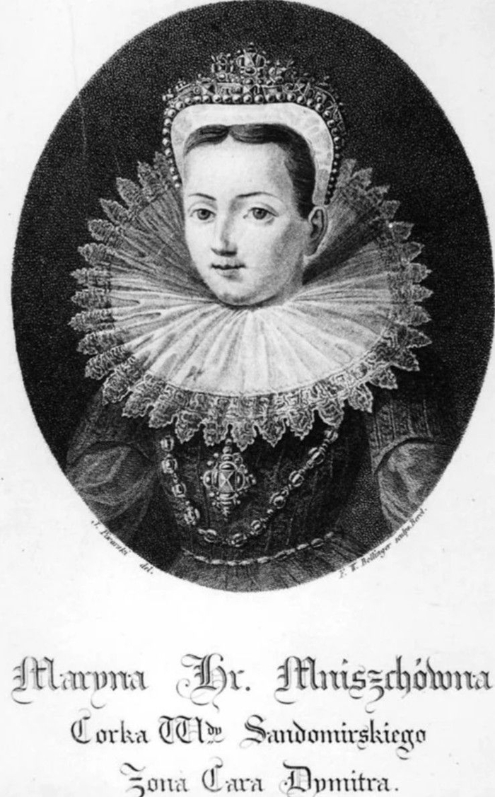 Марина Мнишек (1588–1614) — дочь польского воеводы Ежи Мнишека и Ядвиги Тарло. В браке с Лжедмитрием I стала русской царицей, а после его смерти, боясь за свою жизнь, признала в Лжедмитрии II своего супруга и тайно обвенчалась с ним. В браке с Лжедмитрием II родила сына Ивана Ворёнка.