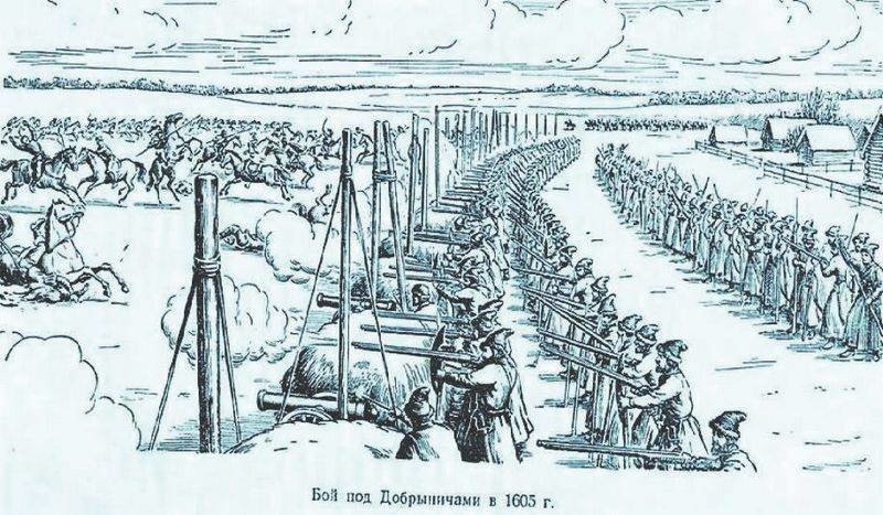 21 декабря 1604 года состоялась Битва под Новгородом-Северским, ставшая первым крупным сражением Смутного времени. Несмотря на численное преимущество противника, польские гусары сумели опрокинуть правый фланг русской армии во главе с воеводой Дмитрием Шуйским. Шуйский не сумел организовать грамотный отход, и русские отряды, отступая, смешались с центром собственной армии, оголяя врагам тыл. Одна из гусарских рот, следуя за отступавшими, повернула вправо и неожиданно оказалась в расположении ставки Мстиславского. В начавшемся бою гусары сбили князя с коня и нанесли ему несколько ударов по голове, однако в этот момент подоспели стрельцы во главе с Михаилом Шеиным, отбили нападение поляков и захватили большую часть гусар в плен. Однако порядок в царском войске был нарушен и русские полки поспешно отступили к своему обозу, стоявшему у леса. Победу в сражение одержала армия Дмитрия, который, по словам очевидцев, прослезился, увидев на поле боя убитых соотечественников.