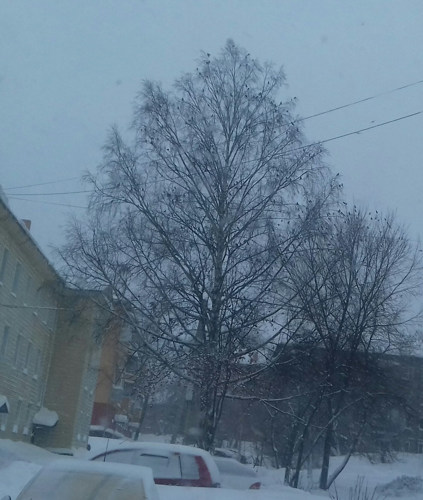 Сибирь, Кузбасс. Вторые сутки идет сильный снег, всего лишь минус три... смотрю в окно, там береза большая, раскидистая, и вся усыпана снегирями...