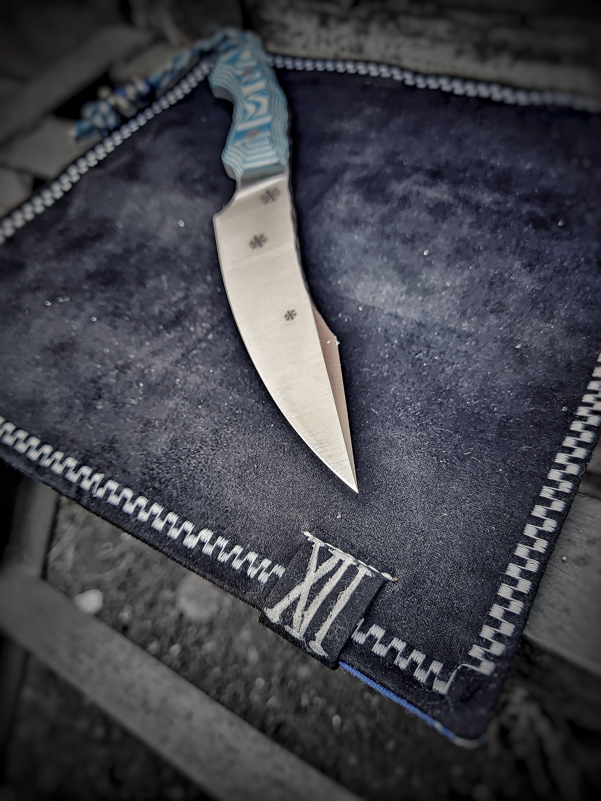 Приветы. Сегодня покажу нашу зимнюю лимитку, Снежноягодник. Лёгкий разделочный нож , мясо/рыба, по кухне тоже весьма неплох. Общей длины ≈270, клин 140х30х4.