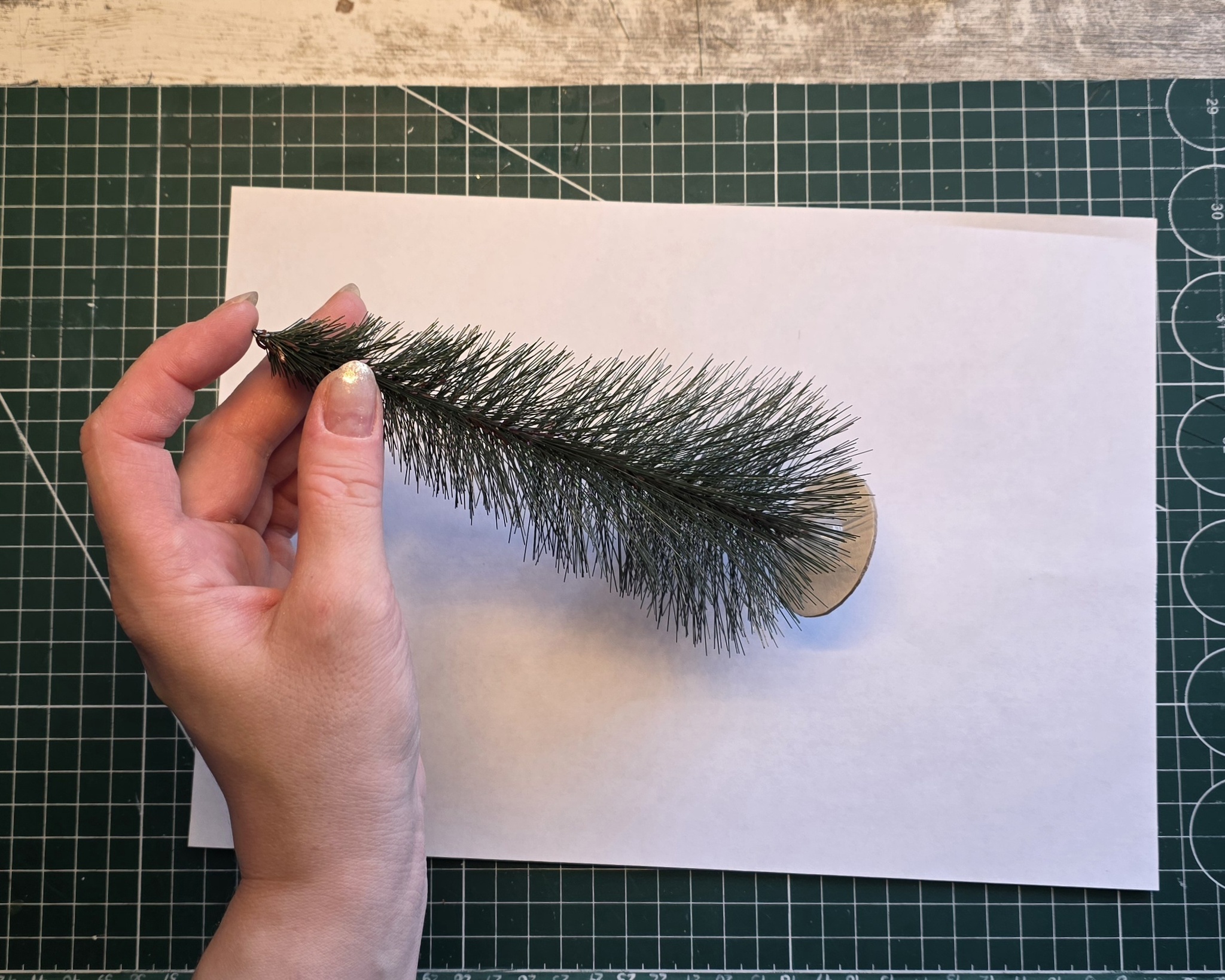 Приклеиваю на термоклей. Клея нужно нанести много, чтобы создать вес, который будет удерживать ёлку.