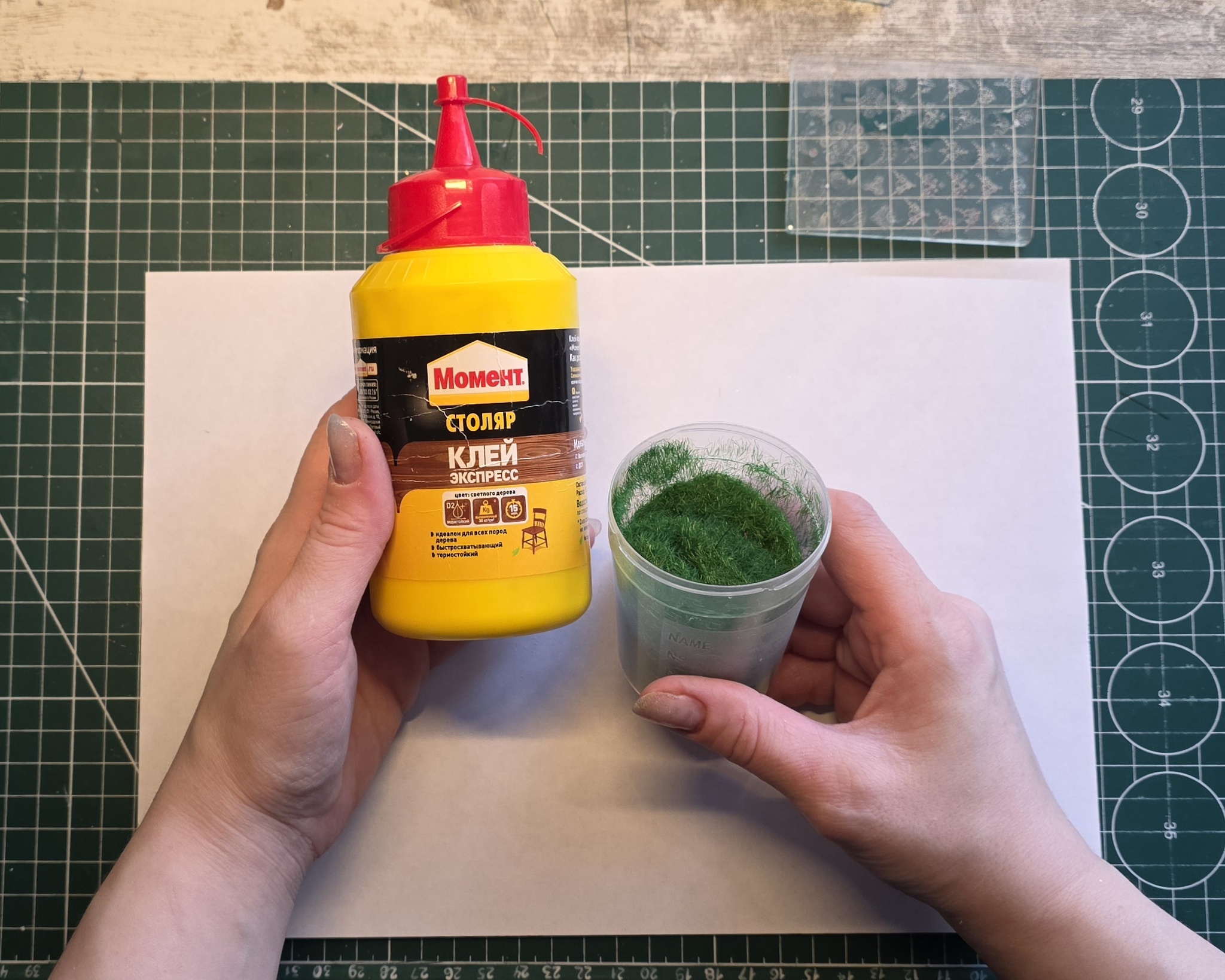 Я взяла столярный ПВА и "траву" посыпку. Почему столярный? Потому что он лучше обычного - аргумент)))