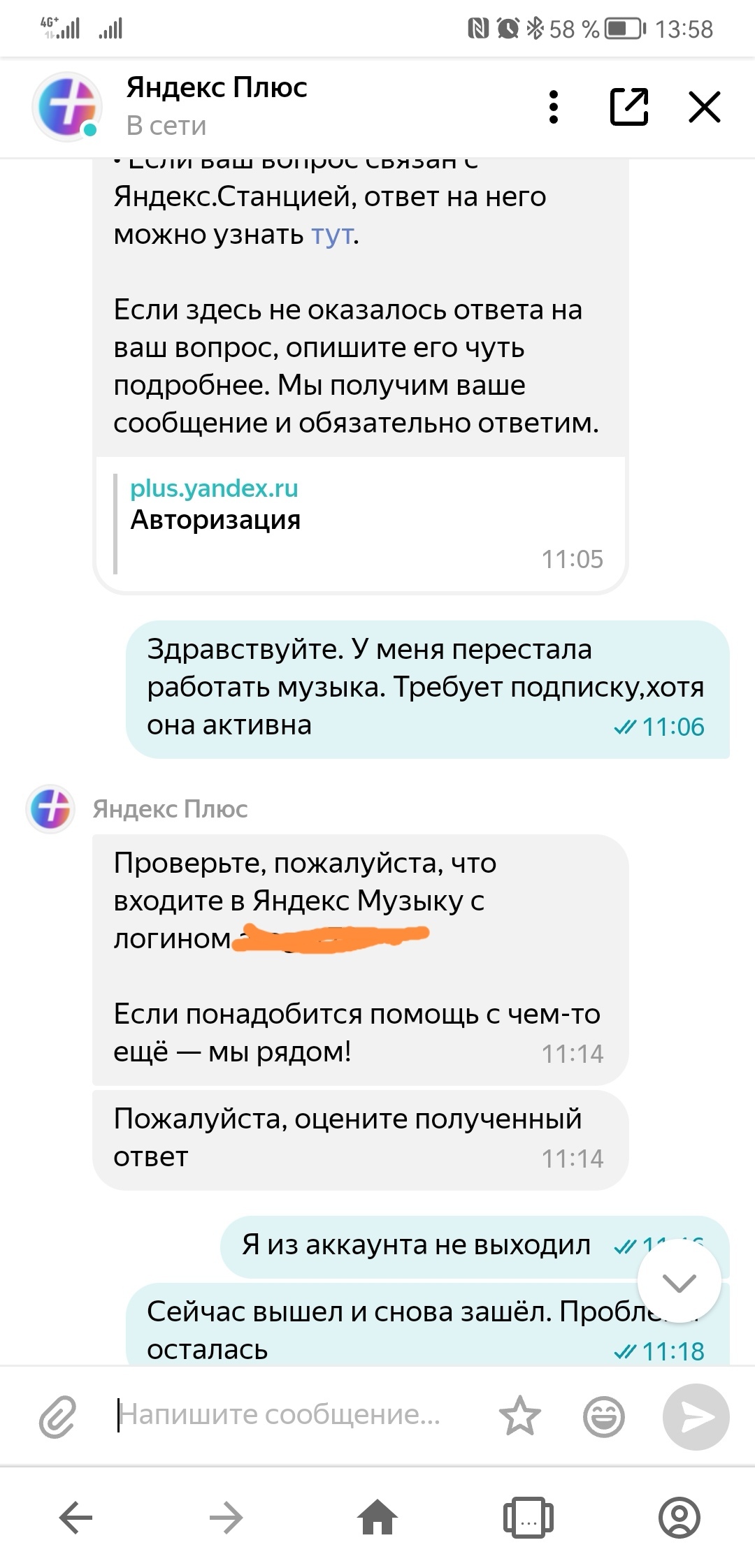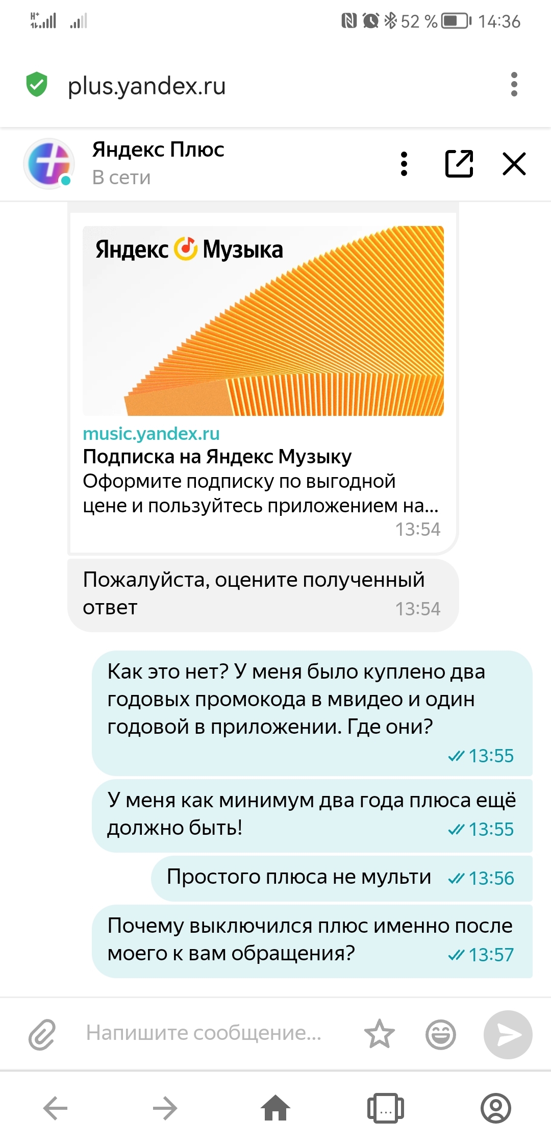 Суть в чем,сегодня по пути на работу включаю музыку,а она не работает. Что такое? Требует с меня плюс. Но я точно знаю что плюса у меня куплено ещё года на два. Смотрю на сайте,плюс есть,все нормально. Написал в поддержку музыки... Там отписались что у вас закончилась подписка и нужно оформить новую... Обратился в обычную поддержку плюса,там тоже написали что подписка закончилась ещё пятого числа. На мой вопрос про то, на сайте она всё ещё активна,никто не ответил. Но самое главное,через полчаса общения с поддержкой пропала подписка и с сайта.