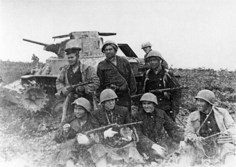 Здравствуйте Уважаемые читатели!!! Очень интересная фотография! Советские бойцы фотографируются на фоне затрофеенного японского танка на острове Шумшу Курильской гряды, за который шли тяжелые бои, а японцы в тяжелый момент 18 августа 1945 года бросили в бой до 60 танков, 2/3 из которых были подбиты из ПТР и гранатами. Да, если ПТР могли наносить определенные поражения немецким танкам, включая тяжелые (приборы наблюдения, ходовая, огонь по смотровым щелям), то с японскими машинами было проще. Капитулировали японцы на Шумшу только 23 августа 1945 года. А на этом все. Спасибо за внимание. Еще больше фактов на моем канале в ТГ. До свидания!