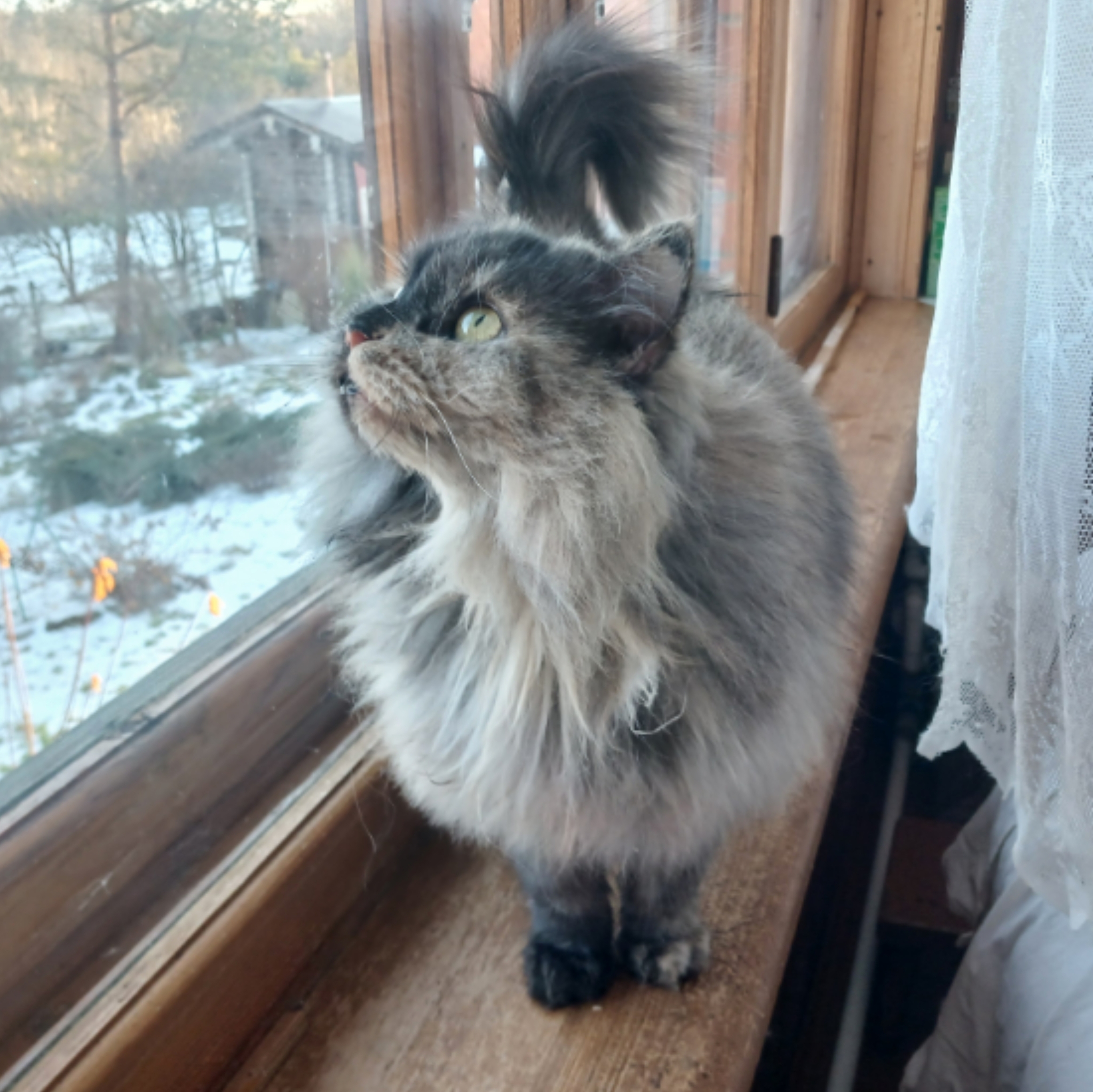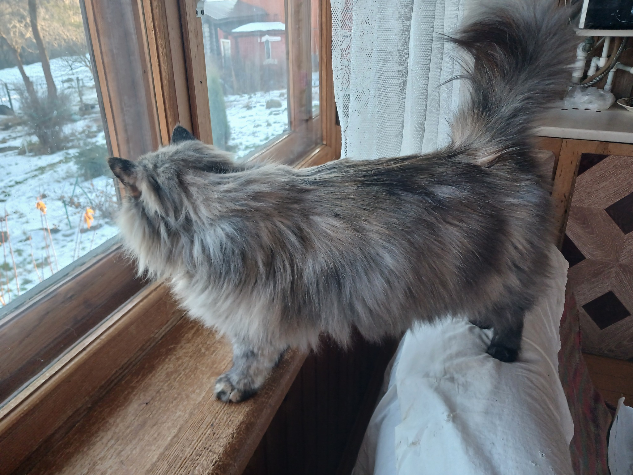 В родне вероятно были персидские кошки. И лицом похожа, и фактура шерсти своеобразная и требует регулярного вычесывания.