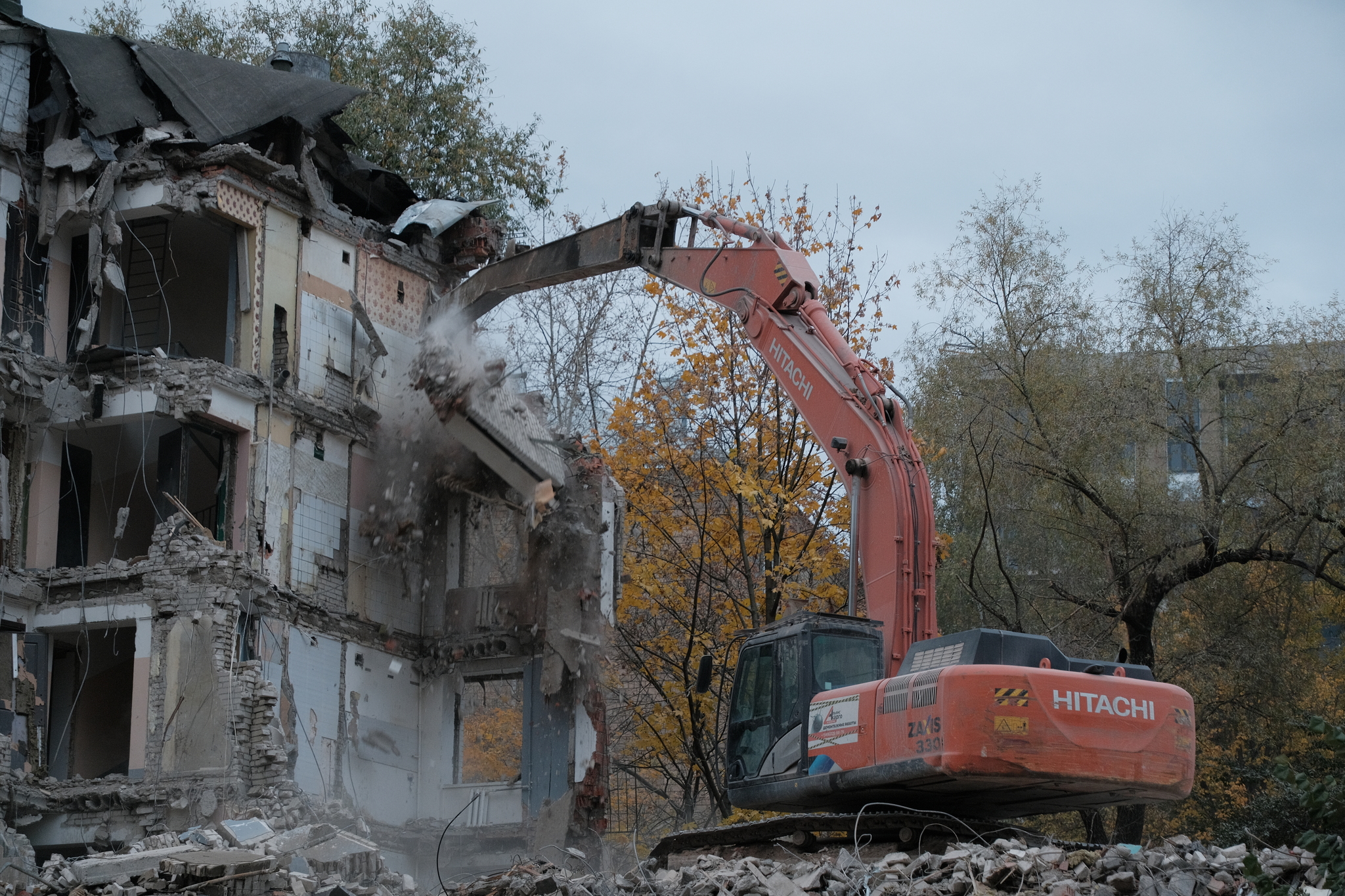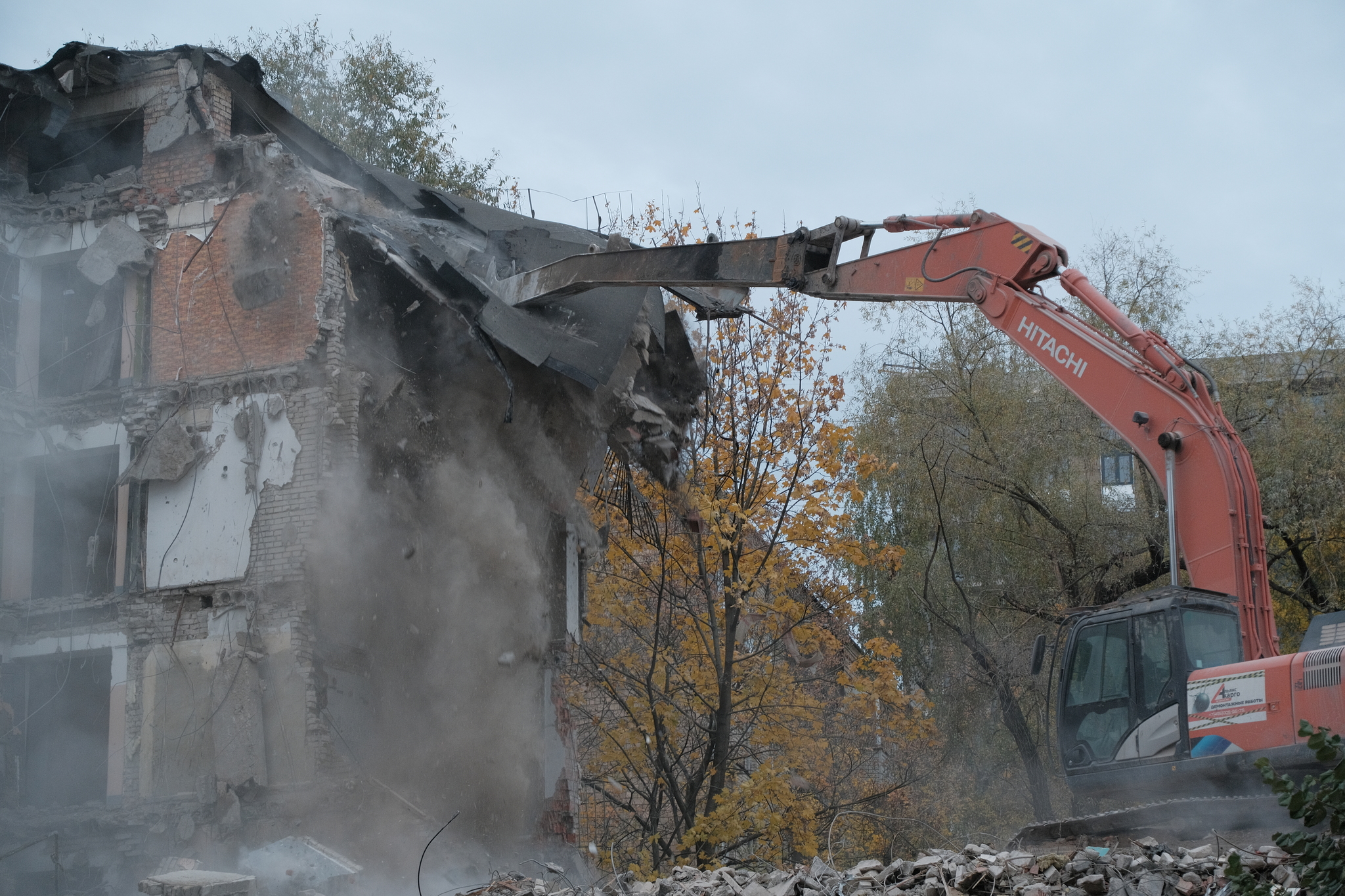 Снова заснял снос расселённой хрущёвки. Очень круто выглядело! Сносить дома - лучшая работа в мире XD
