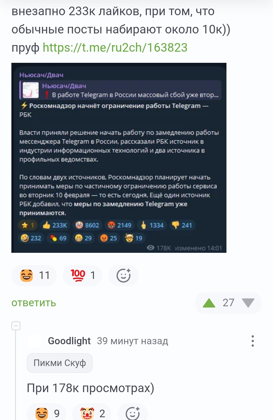 756 DmitryTs нетакусик Юмор для всех и каждого Политика Снова 146%1 20 дней назад Достойно отдельного поста Юмор Скриншот Политика Комментарии на Пикабу Telegram Роскомнадзор 119 43 17 5 3 2 1 1 1 Ещё 4