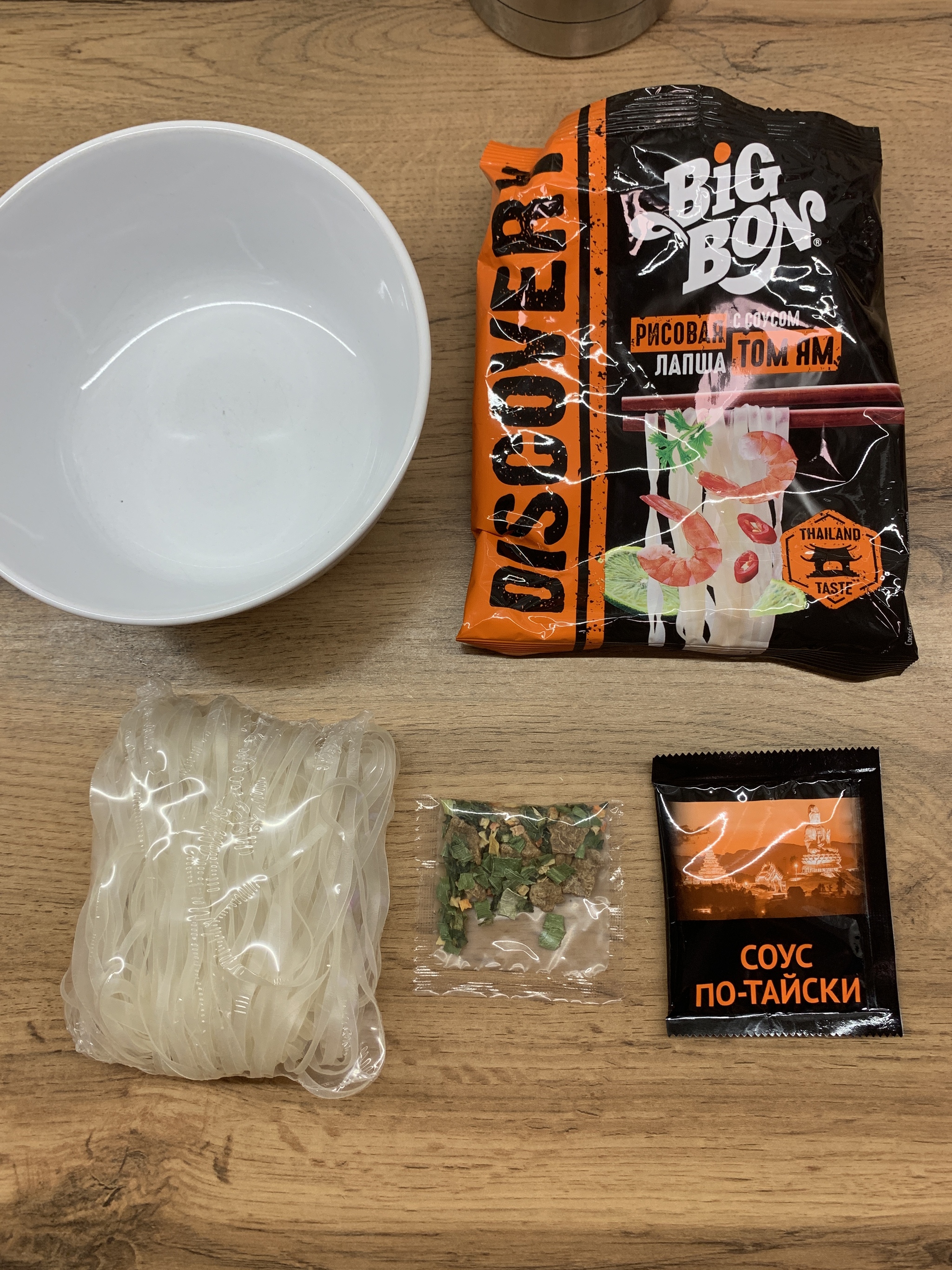 Недостаток всех квадратных брикетов в том, что их трудно нормально положить в круглую тарелку и равномерно залить. Поэтому у Бигбона мне нравится лапша в виде круглых брикетов.