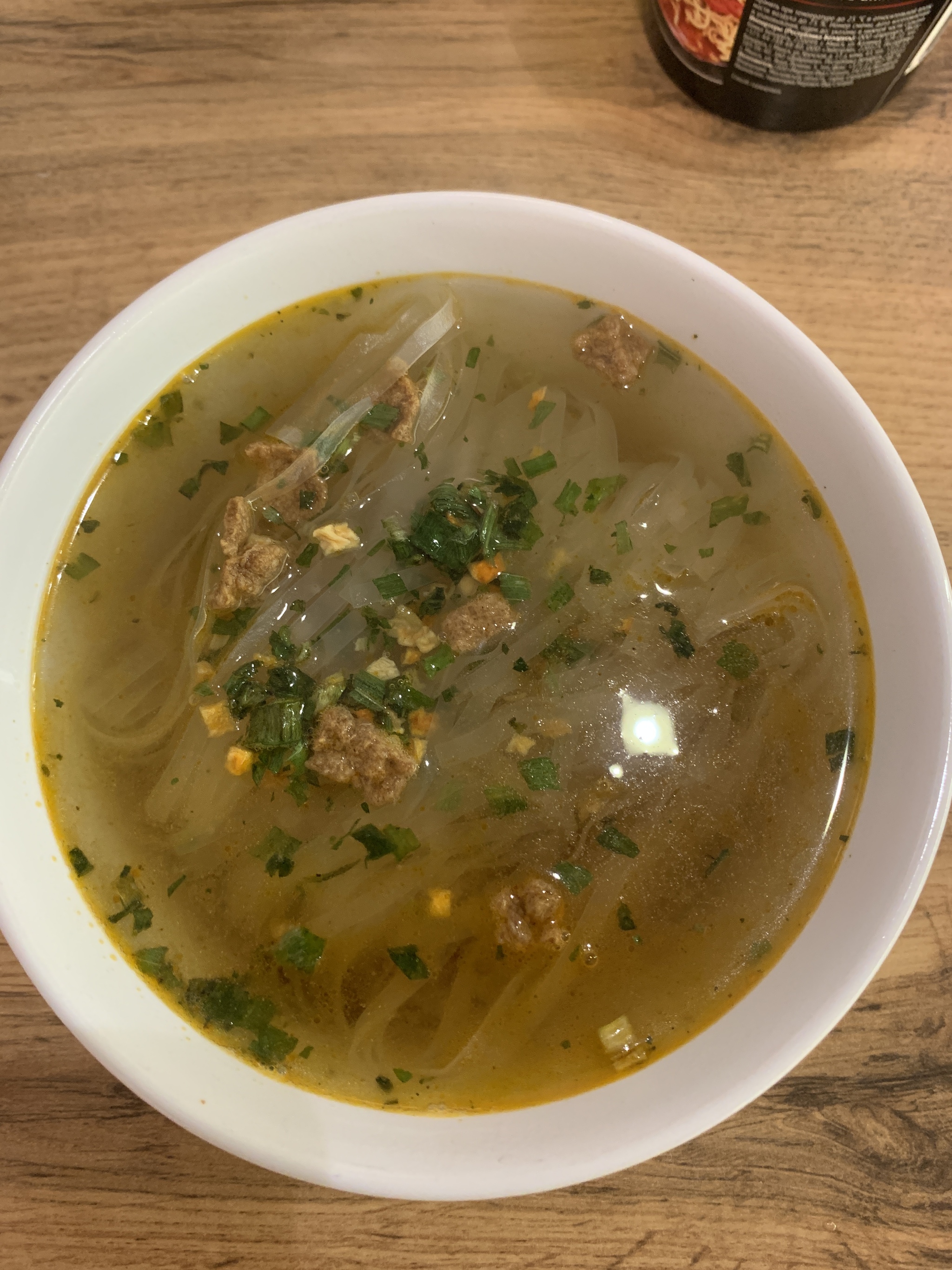Пахнет - обалдеть! Я даже не ожидал. Очень точно подобраны ароматизаторы и вкусовые добавки в соус. Если закрыть глаза и втянуть аромат носом - почти невозможно отличить от оригинального ТомЯма. Единственное отличие - нет запаха креветки и кокосового молока, но есть яркий запах лайма, имбиря и чего-то просто курино-рыбного. Но явно не креветки. Остальные ароматы выражены явно меньше. Грибы тоже не ощущаются. Также похоже что использовались растительные сухие сливки, чтобы имитировать кокосовое молоко. Острым перцем не пахнет вообще. Пробуем.