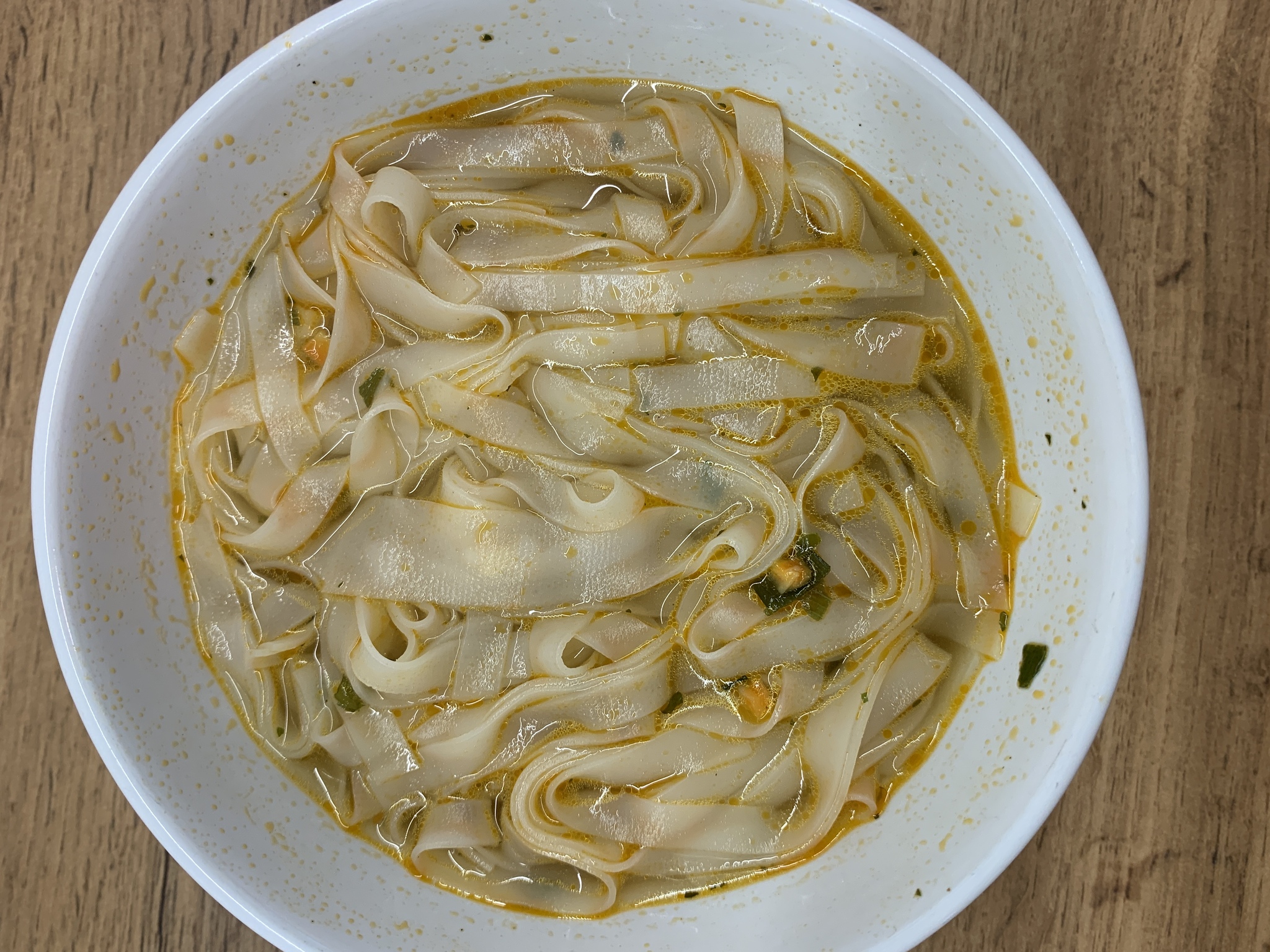 Лапша, как ожидалось, плотная, приятная. Но разница в ширине удивляет - то очень тонкая, то сразу в половину вилки. Но мозг не обманешь - наличие только лапши и бульона не делает его тем самым Том Ямом: все равно машинально ожидаешь выловить грибочек или креветку.
