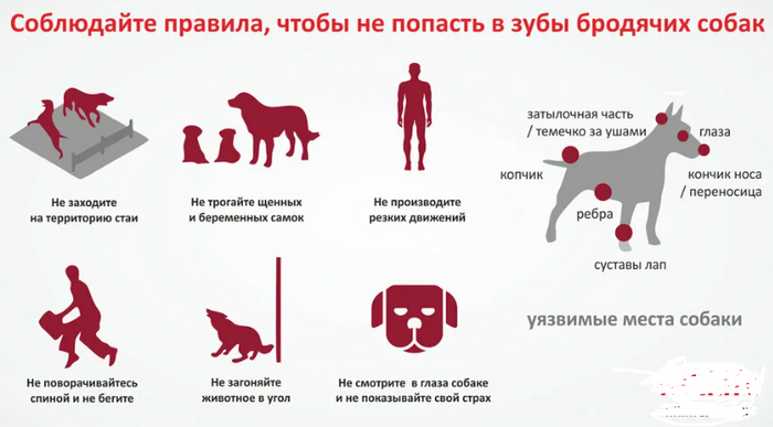 Ещё немного бомбёжа. Нашёл тут памятку. Про не поворачивайтесь спиной и не заходите на территорию стаи - это прям "прекрасно". Почему вообще люди должны под блоховозов подстравиваться? Это инвазивный и опасный вид, который подлежит истреблению. Нет хозяина - месяц или два в приюте и добро пожаловать на радугу.